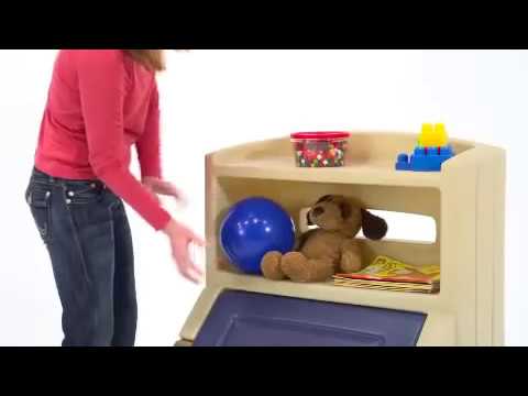 Esta repisa - baúl todo en uno tiene harto espacio de almacenamiento y el plástico es a prueba de golpes y uso intenso por parte de niños.