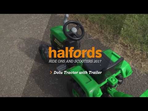 Este tractor color verde cuenta con un espacioso carro para cargar y transportar cosas en la parte trasera. Diseñado con un asiento ajustable para que los pequeños puedan alcanzar fácilmente los pedales, este tractor también cuenta con un divertido cuerno para trabajar.